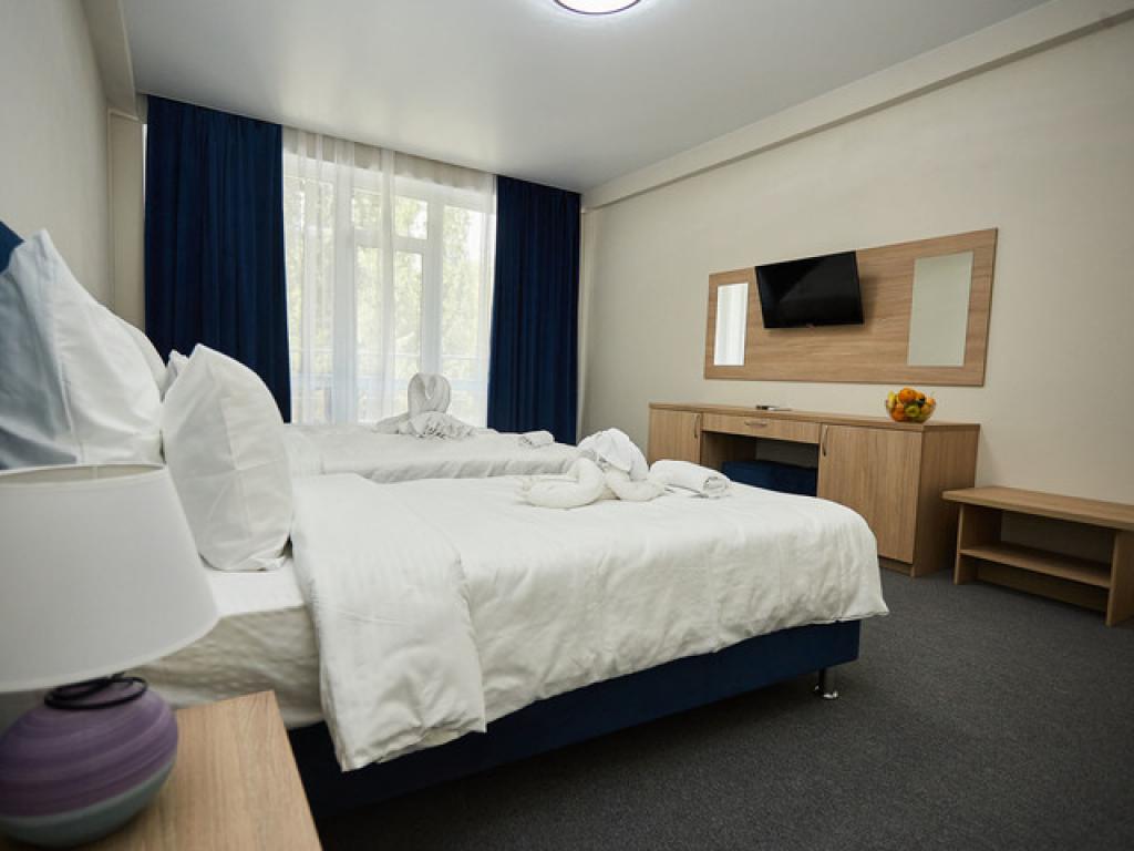 Отель предлагает однокомнатные и двухкомнатные номера "люкс" со всеми удобствами: холодильник, телевизор, кондиционер, санузел в номере, балкон, электрочайник