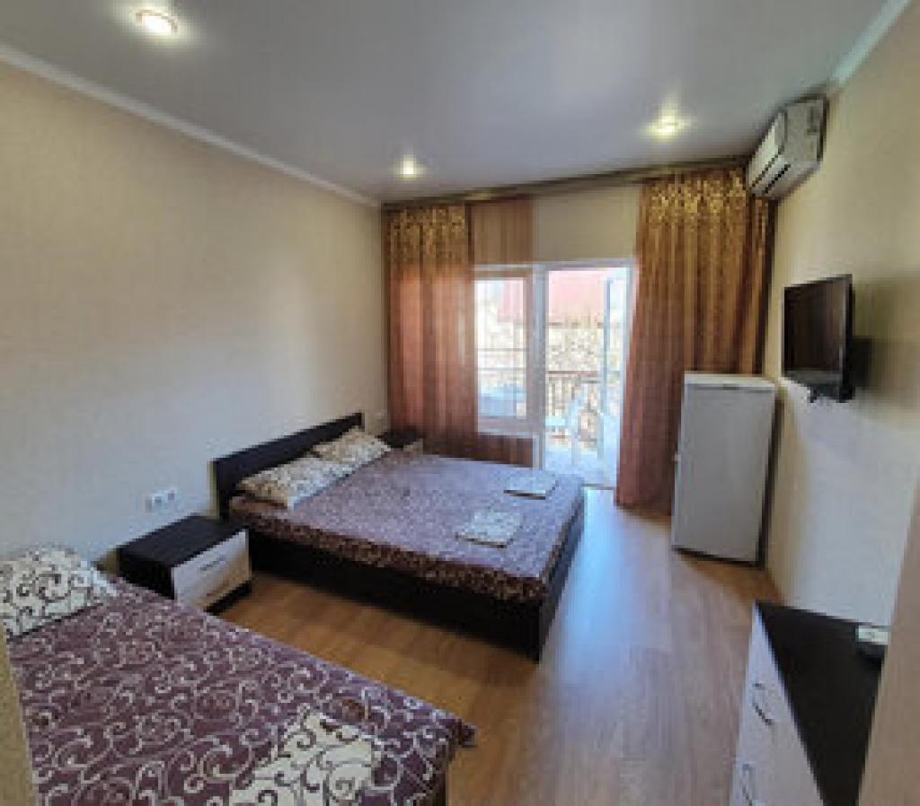 телевизор, кондиционер, холодильник, платяной шкаф, прикроватные тумбы, балкон (в зависимости от номера), ванная комната.
