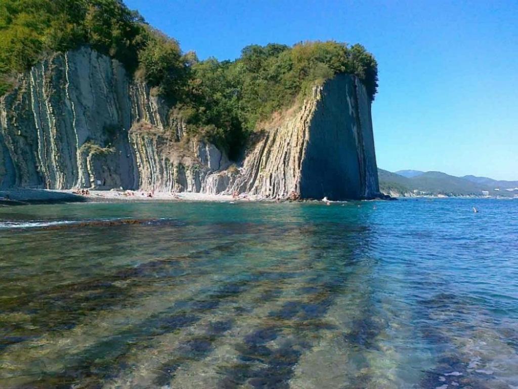 Пологое и ровное морское дно удобно для захода в воду и купания детей.